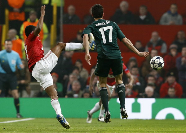 Luís Carlos Almeida da Cunha (Manchester United) is sent off for assaulting Álvaro Arbeloa (Real Madrid) at Old Trafford during their Champions League encounter.